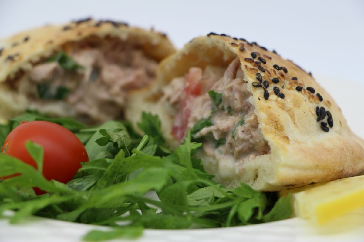 Rolled with onion, and pickles in tahini sauce.